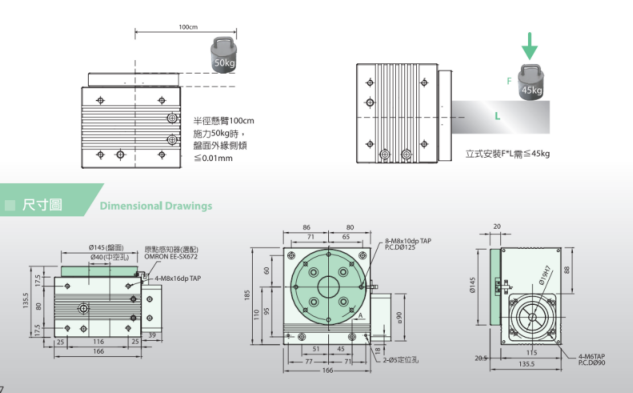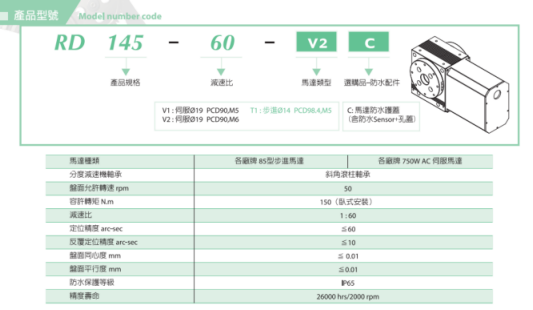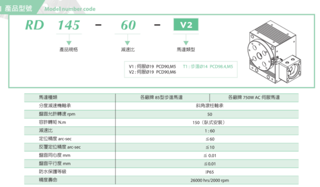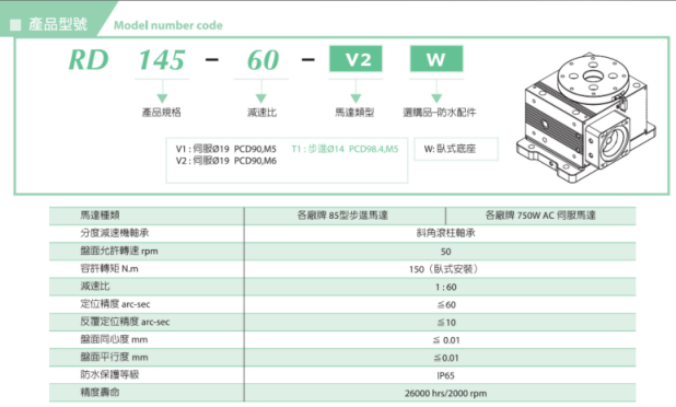 1.高精密分度盘RD系列具防水等级IP65且有自锁力,可应用于研磨设备之旋转轴(例如磨边,导角等)、抛光设备之旋转轴(做第四轴或第五轴使用)...等用途.