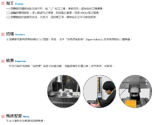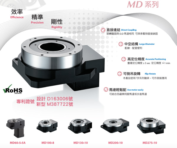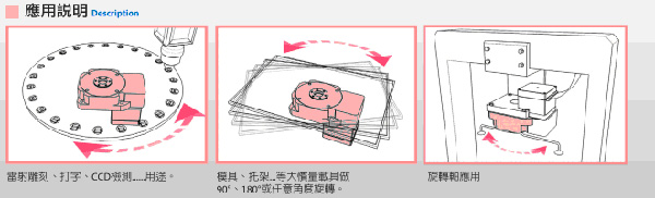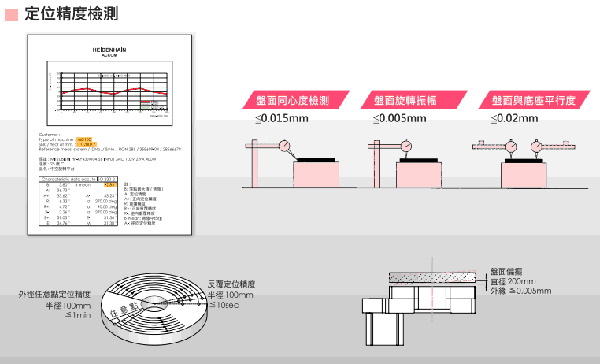1.高效率、高精准、高剛性、中空結構高重複定位精度±5sec,任一工位、任一角度,任 一速度。