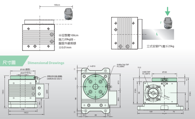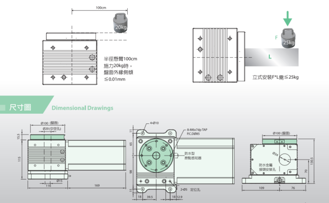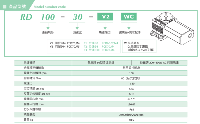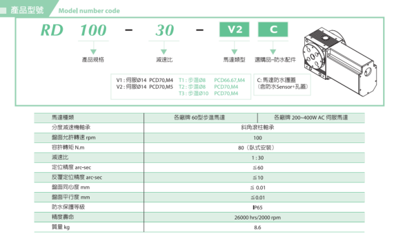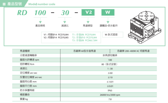 1.高精密分度盤RD系列具防水等級IP65且有自鎖力,可應用於研磨設備之旋轉軸(例如磨邊,導角等)、拋光設備之旋轉軸(做第四軸或第五軸使用)...等用途.