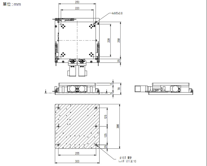 250x250 300x300 78 ±5 2° 水平最大30-50kg 9.2+2%kg